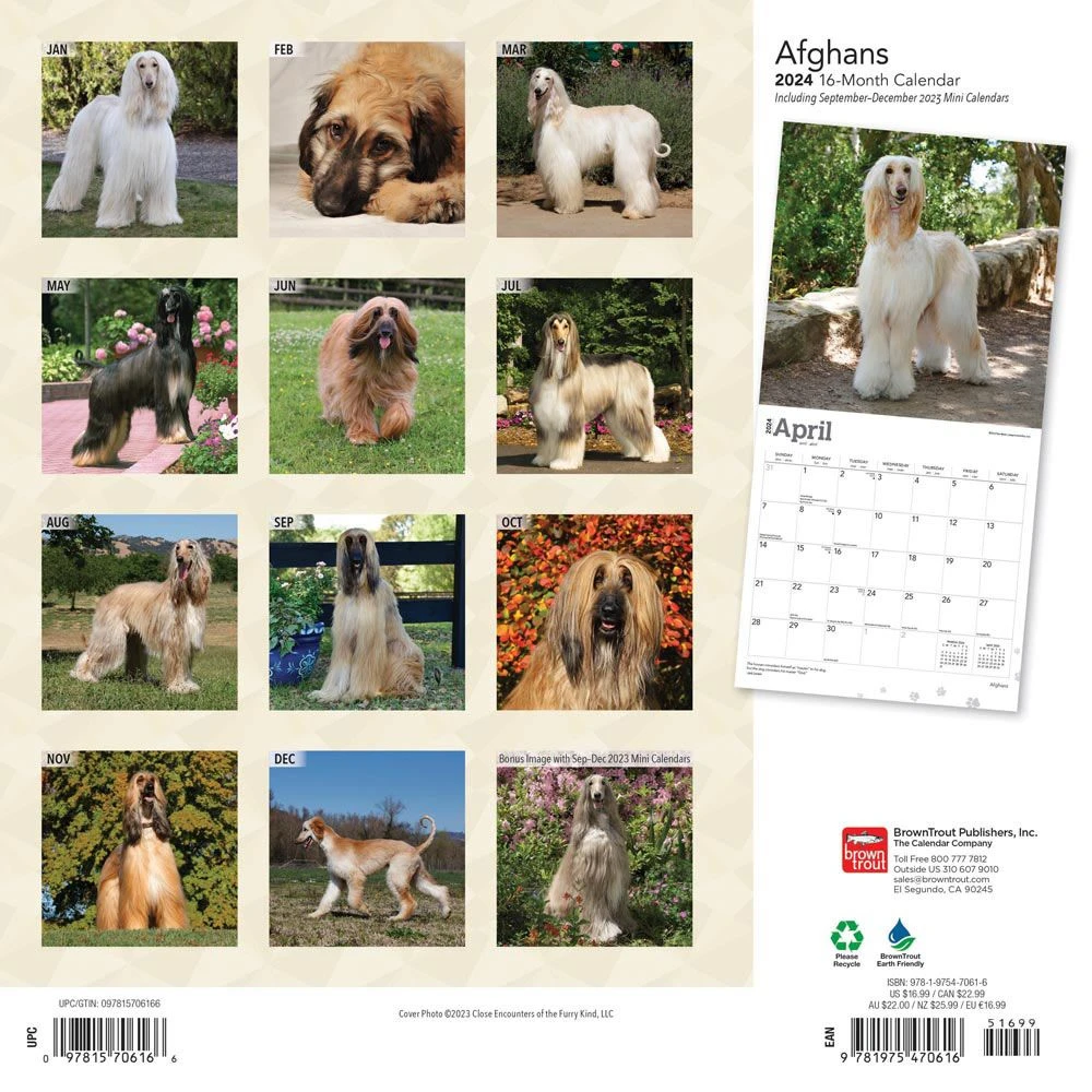 The Afghan was discovered in Afghanistan in the 19th century. Its dignified appearance belies its affectionate nature. It is a joy to watch this hound trot as its long silky hair sways gracefully alongside its lean, athletic frame. Those partial to this regal breed will treasure this elegant Afghans calendar.