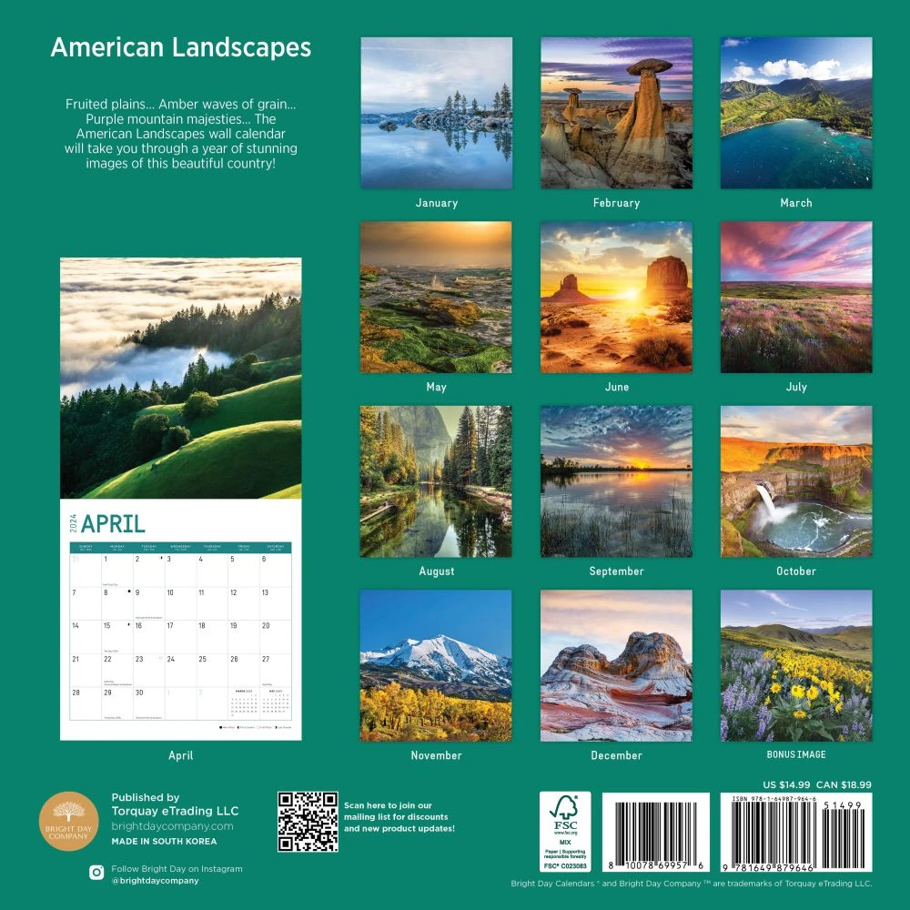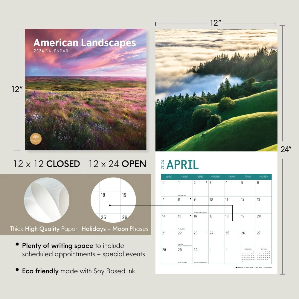 American Landscapes brings to life a year’s worth of spectacular vistas of the United States in spectacular photographic imagery. This calendar showcases the quintessential landmarks and landscapes that define our great land. The scenic beauty and diverse wildlife of North America’s national parks and open spaces are celebrated in this unique wall calendar. HIGH QUALITY: 2024 American Calendar Size Closed: 12 x 12 Inch. Opened: 12 x 24 Inch. Does not bleed through! 13 Full Color Images in our 2024 USA Wall Calendar! All 2024 Patriotic Calendar photos are hand selected from a wide array of photographers from around the world! No compromises are made on image quality or content in our 2024 patriot wall calendar.