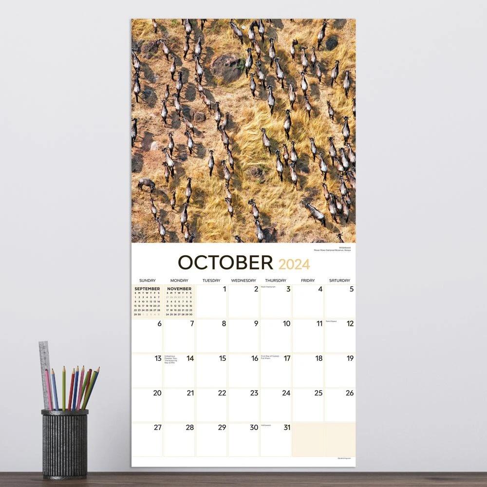 Home is where the herd is! Our 2024 Animals In Motion wall calendar features stunning images of various animal herds in the wild that will motivate you to keep your pack coordinated. Printed on premium gloss paper, this 2024 12 month wall calendar measures 12″ x 12″ and includes thirteen, full color images combined with monthly calendar grids and a bonus 4 month view of January 2025 April 2025.