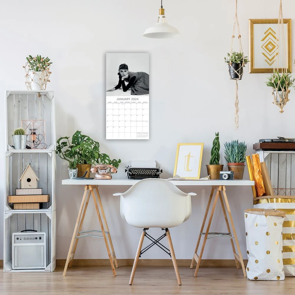 This high quality 2024 calendar is perfect for classic film lovers. Each month’s focus is on the iconic Audrey Hepburn, while the large grid is ideal for the home and office with space for birthdays and notes. The calendar is printed on high quality, thick paper stock with a glossy finish and sturdy binding. The stylish design features black and white Audrey Hepburn photos so you can show off your love of film while keeping track of time. Whether you buy it for yourself or give it as a gift, this calendar is sure to please!