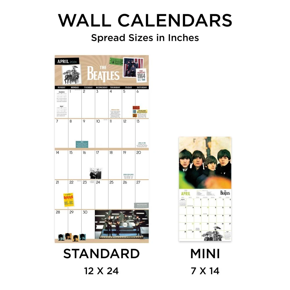 All you need is love and a Beatles calendar! This 2024 12 month wall calendar featuring the Fab Four measures 12″ x 12″ (12″ x 24″ open) and has thirteen images of John, Paul George, and Ringo in their element. The calendar includes monthly calendar grids and a bonus 4 month view of January 2025 April 2025. Printed on premium matte paper that works great when writing with either a pen or pencil.