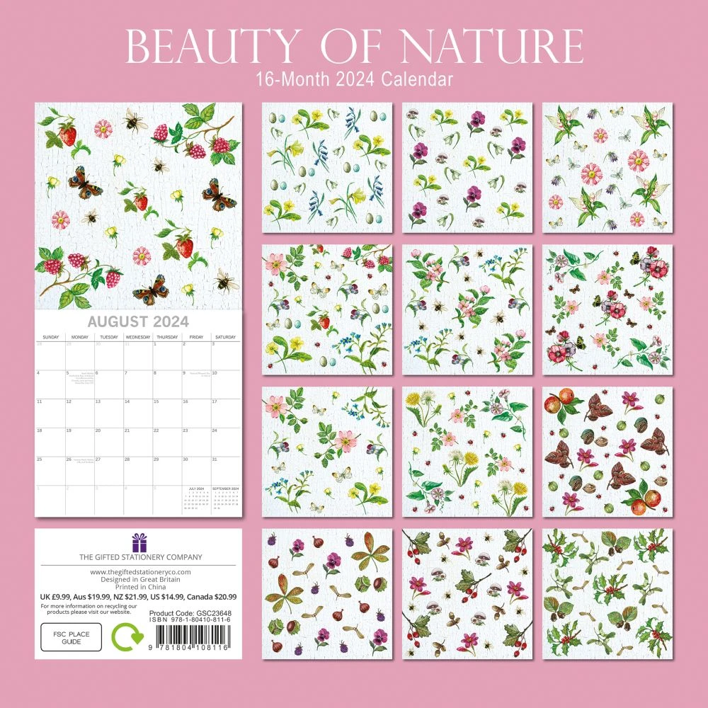This high quality floral 2024 calendar is perfect for nature lovers. Each month features stunning nature images, while the large grid is ideal for the home and office with space for birthdays and notes.