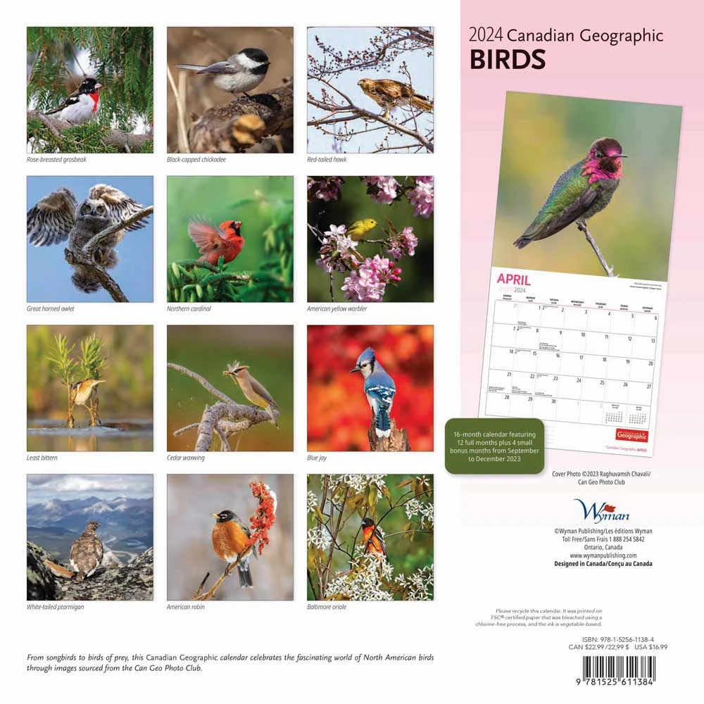From songbirds to birds of prey, this Canadian Geographic calendar celebrates the fascinating world of North American birds through images sourced from the Can Geo Photo Club. This square wall calendar is produced in English.