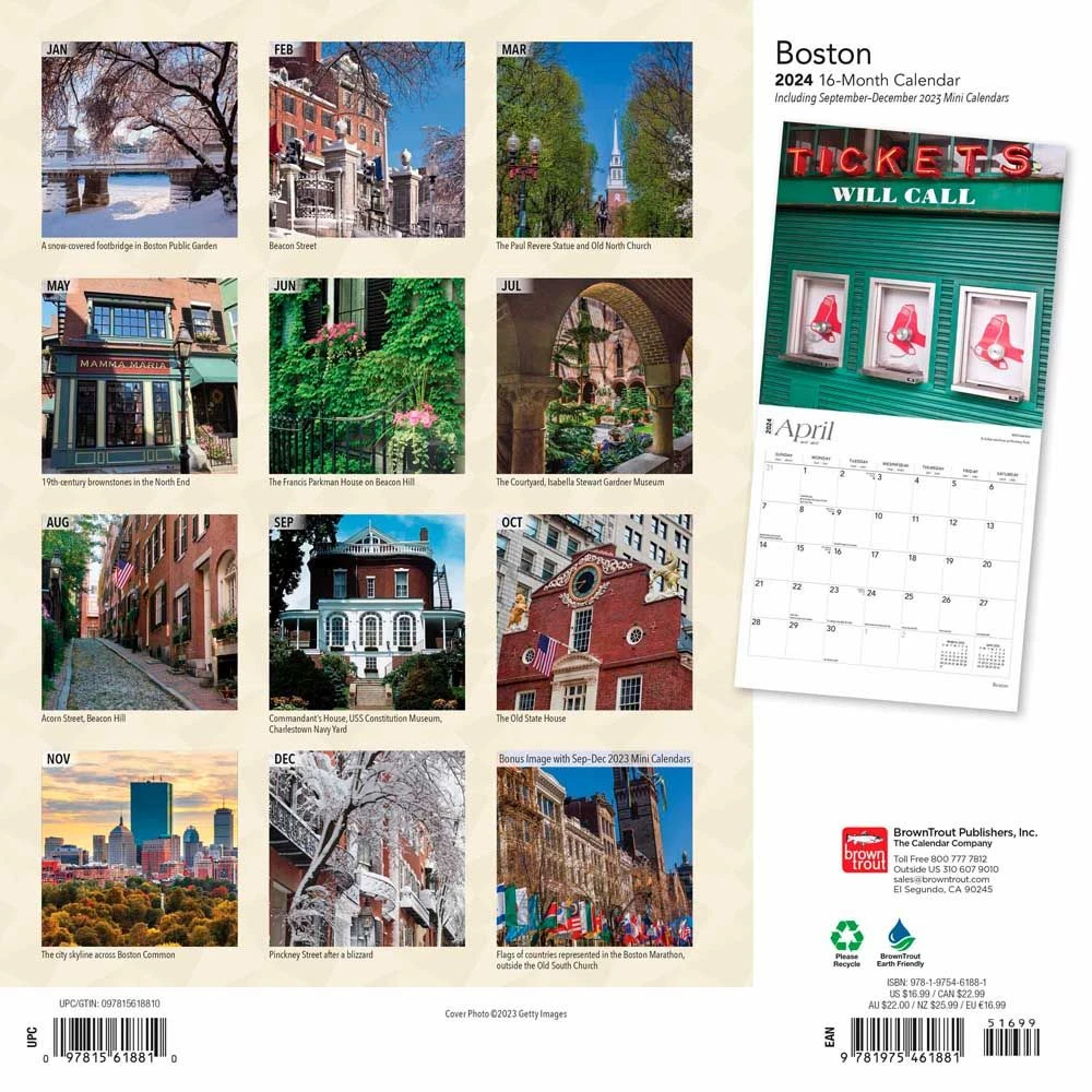 Boston boasts a large range of ethnic neighborhoods, sophisticated centers of academia, and an abundance of historically significant landmarks. Visitors enjoy walking down cobblestone streets to the path where Paul Revere began his midnight ride, dining on fabulous seafood, admiring the Charles River, or visiting one of many outstanding museums. Celebrate this incomparable cultural center all year long with this Boston calendar.