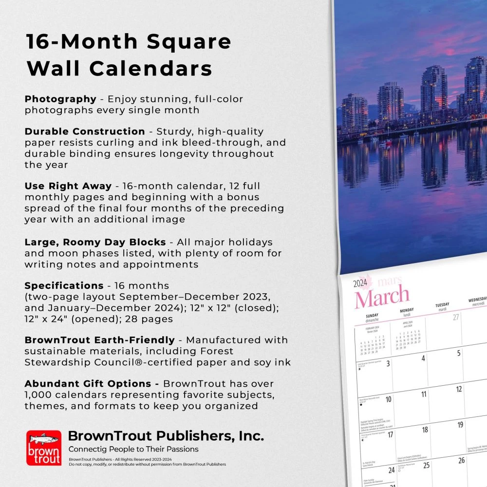 Canada’s westernmost province, British Columbia, offers an abundance of picturesque landscapes. This calendar offers stunning images of B.C.’s jaw-dropping mountain vistas, lakes, meadows and forests. This square wall calendar is produced in English.