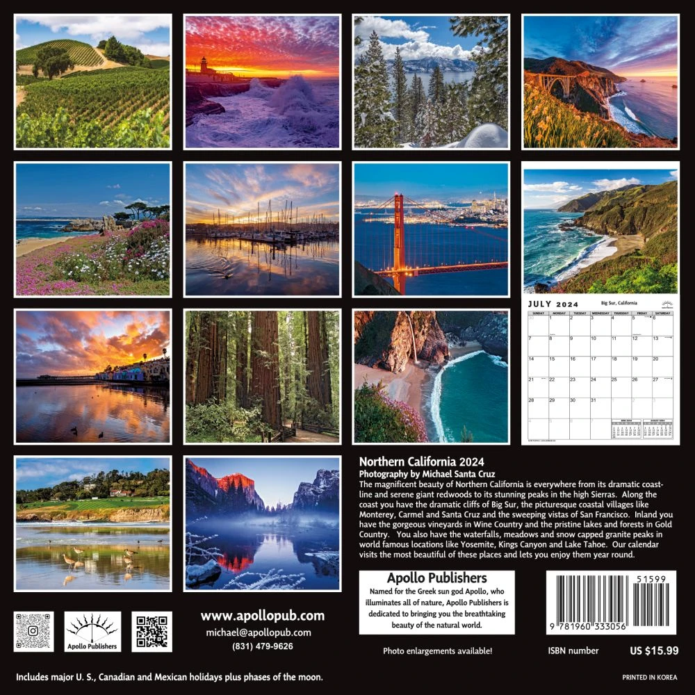 The magnificent beauty of Northern California is everywhere from its dramatic coastline and serene giant redwoods to its stunning peaks in the high Sierras. Along the coast you have the dramatic cliffs of Big Sur, the picturesque coastal villages like Monterey, Carmel and Santa Cruz and the sweeping vistas of San Francisco. Inland you have the gorgeous vineyards in Wine Country and the pristine lakes and forests in Gold Country. You also have the waterfalls, meadows and snow capped granite peaks in world famous locations like Yosemite, Kings Canyon and Lake Tahoe. Our calendar visits the most beautiful of these places and lets you enjoy them year round.