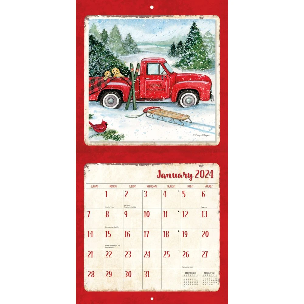 Wells Street by LANG Wall Calendars feature full color images based on hand painted originals, elegant linen embossed paper stock, and a brass grommet for hanging. The Country Road 2024 Wall Calendar showcases artwork by Susan Winget.