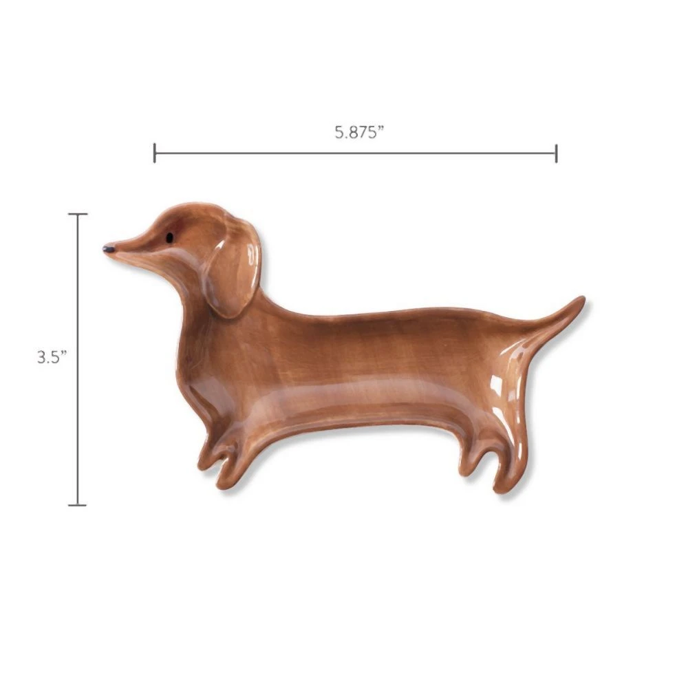Introducing the Dashshund Shaped Trinket Tray the perfect accessory for any home or office. This stunning tray is made from hand painted and sculpted ceramic, ensuring every individual piece is one of a kind. Featuring art by Julianna Swaney, each piece will make a unique statement in any room. A unique design allows you to enjoy this decorative adornment as either a single item or part of a set. Its included keepsake box also adds convenience when packing the tray up for a special occasion or gifting it to someone special. Perfect for keeping small items like jewelry and coins, the Dashshund Shaped Trinket Tray is an eye catching addition to any living space.