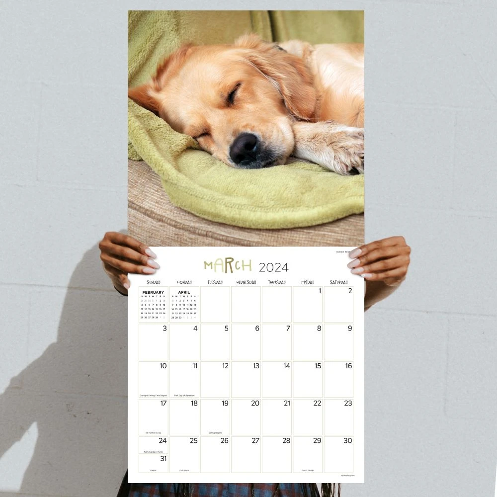 What?s cuter than dogs and puppies dreaming? Nothing! Whether they?re dreaming of chasing squirrels or gnawing on their favorite bone, these precious pups are sure to make you smile. The 2024 12 month wall calendar measures 12″ x 12″ and includes thirteen adorable, full color images combined with monthly calendar grids and a bonus 4 month view of January 2025 April 2025. Printed on premium gloss paper.
