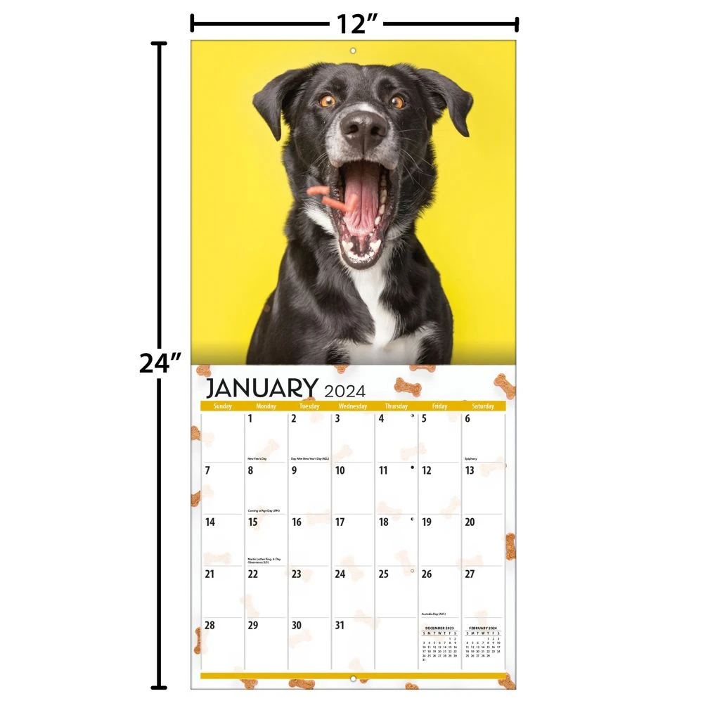 The Doggy Want A Treat Wall Calendar is a treat for any dog lover. Each month features high-quality photographs of adorable pups savoring their favorite snacks, bringing joy and smiles to every day.