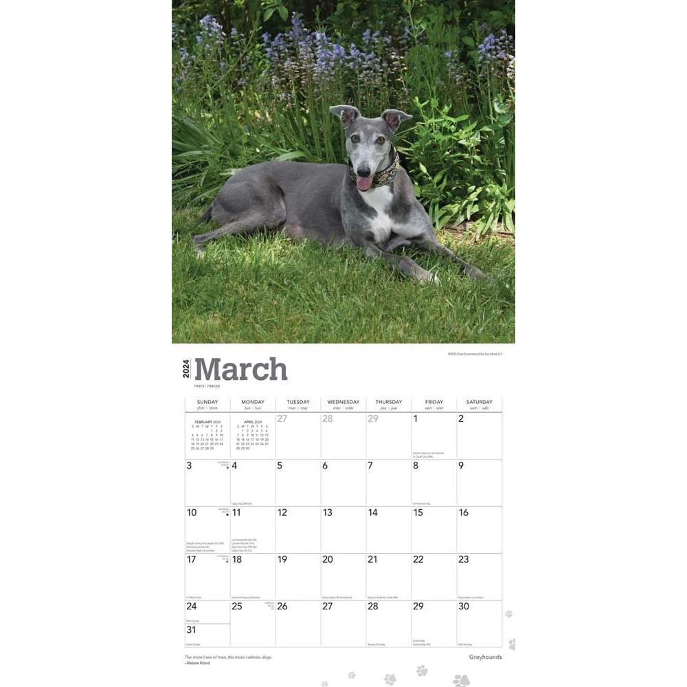 Presumably from Egypt, this breed dates back 5,000 years or more. The Greyhound is gentle, loving, affectionate and incredibly fast. General George A. Custer fancied these graceful animals so much that he owned a pack of about 40 hounds. Those who admire the sleek, beautiful Greyhound will appreciate this magnificent calendar.