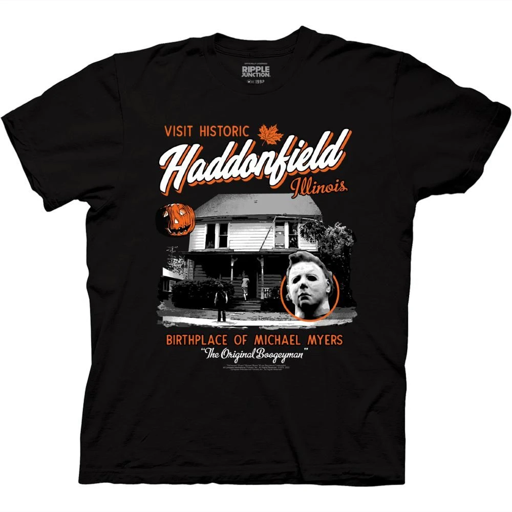 Are you a horror fan determined to show your love for one of the greatest franchises of all time? Get yourself ready for Halloween and beyond with the awesome Halloween Visit Haddonfield Unisex tee shirt! It’s perfect for any fan looking to both subtlety pay homage and unleashed their inner Halloween fanatic. Crafted with 100% cotton, this shirt is soft and breathable, creating an ultra comfortable fit. Lightweight and fitted, with a crew neck and unisex styling, this item makes a great addition to any wardrobe. Plus, it comes complete with all the convenience you’ve come to expect, like being machine washable in cold water with like colors and a recommended tumble dry low setting. What are you waiting for? A slasher to come bursting through your door? He just might change his mind when he gets a look at this tee!