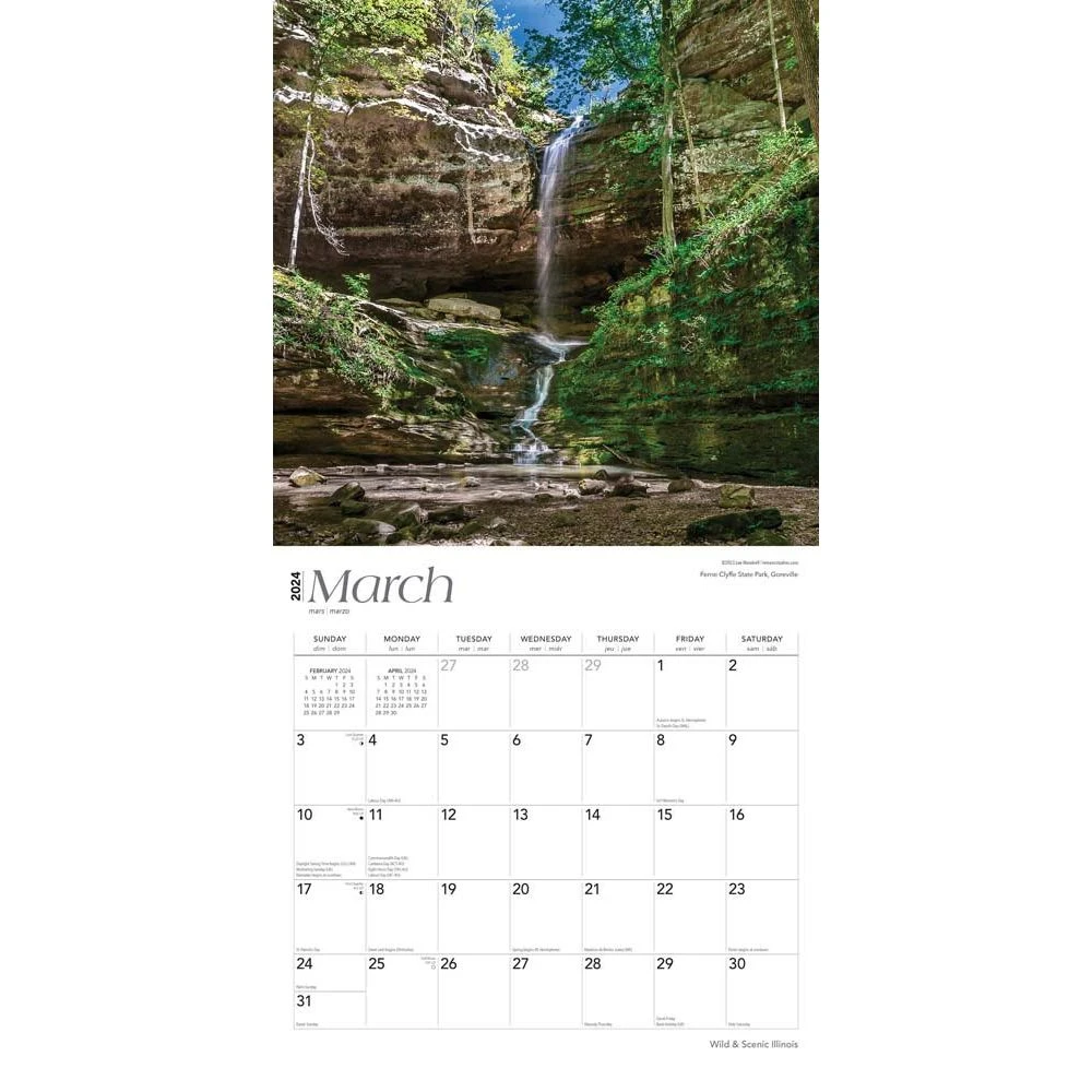With gorgeous farmland, thriving wetlands, fields of brilliant wildflowers, stunning lakes, and of course, mighty rivers, Illinois is truly the heartland of America. From the wooded shores of Lake Michigan to the rolling Ozark foothills, this state offers wild and scenic vistas all year round. Watch as the great Prairie State of Illinois reveals its sylvan secrets in the pages of this beautiful calendar.