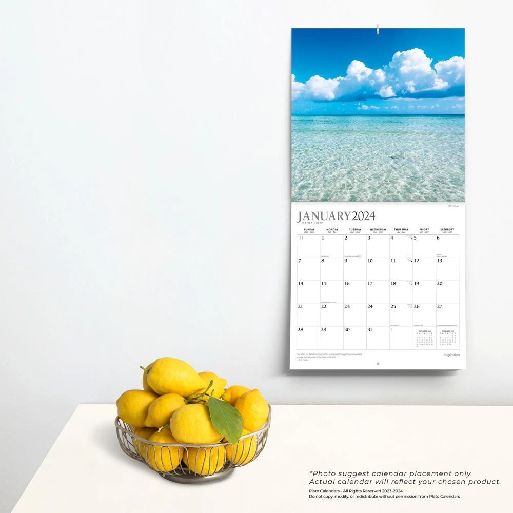 Inspiration whatever, whoever moves the human mind to produce creative thought or to exert greater effort. A family member, a friend, a leader, religion, nature, or the written word can inspire an individual to greater heights. The lush photography and inspirational passages in this calendar are sure to provide joy and rejuvenate the spirit.
