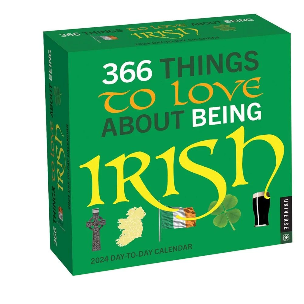 366 Things to Love About Being Irish 2024 Day to Day Calendar offers up a daily reason to celebrate being Irish?or to wish you were?including curses, folklore, history, quotations, slang, traditions, inventions, and Irish and Irish American celebrities and cultural icons.