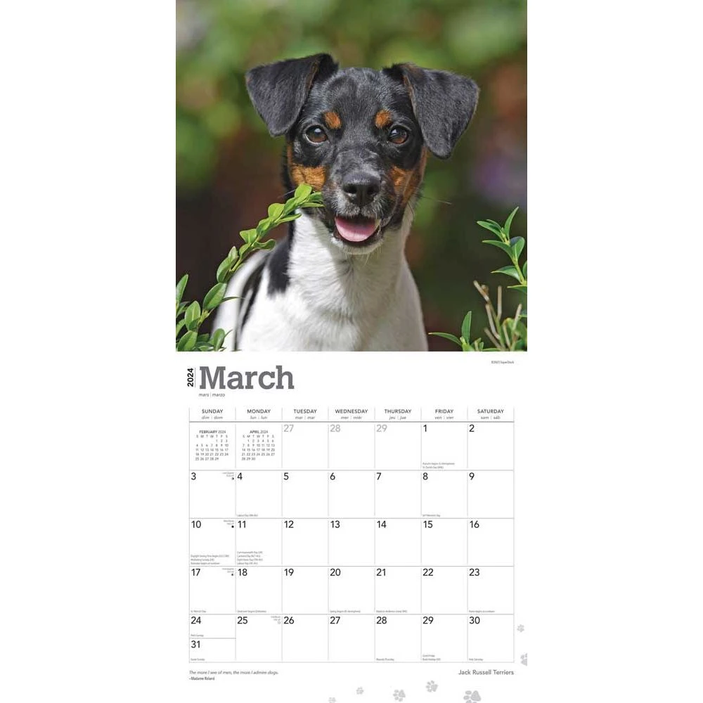 This dog breed is most commonly recognized as the perky dog Eddie on TV’s Frasier. Jack Russell Terriers have also appeared in other TV shows and movies such as Wishbone, The Mask, and My Dog Skip. The popular Jack Russell also stars in this sensational calendar. This product is intended for consumers in the United States.