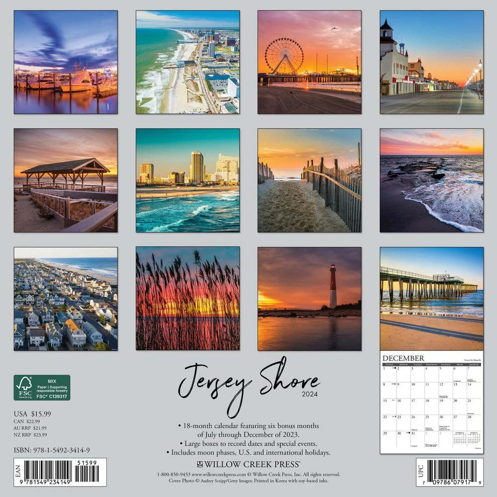 From Atlantic City to Cape May, the Jersey Shore never looked so good. Ocean Drive calls you to ?Follow the Gull? along salt marshes, inlets, and busy fishing ports, while stunning views of the Atlantic stretch out to the horizon. Printed with soy based inks on FSC certified paper, this 12?x 24? wall calendar features large monthly grids that offer ample room for jotting notes, along with six bonus months of July through December of 2023. Also includes moon phases (CST), standard U.S., and international holidays.