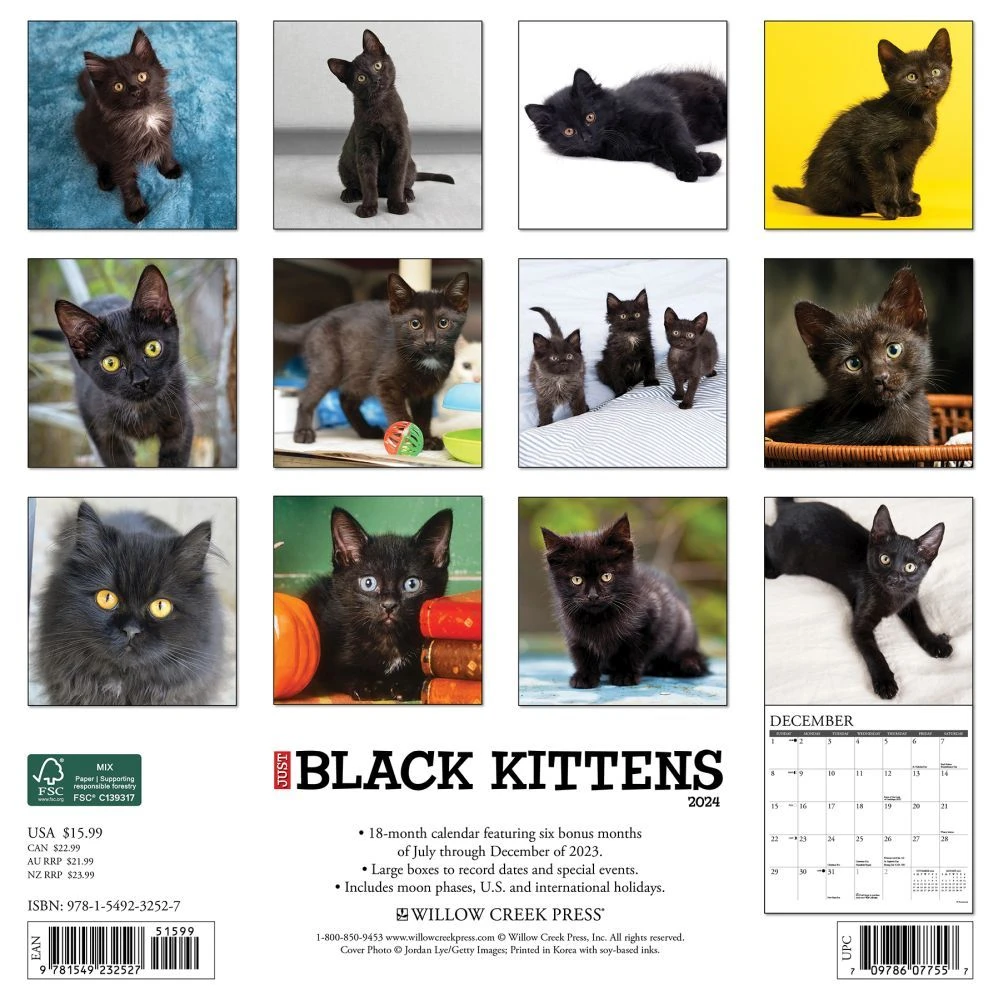 These dark, inky babies are full of cuddles, mischief, fluff and fun. Printed with soy based inks on FSC certified paper, this 12″ x 24″ wall calendar features large monthly grids that offer ample room for jotting notes, along with six bonus months of July through December of 2023. Also includes moon phases (CST), standard U.S. and international holidays.