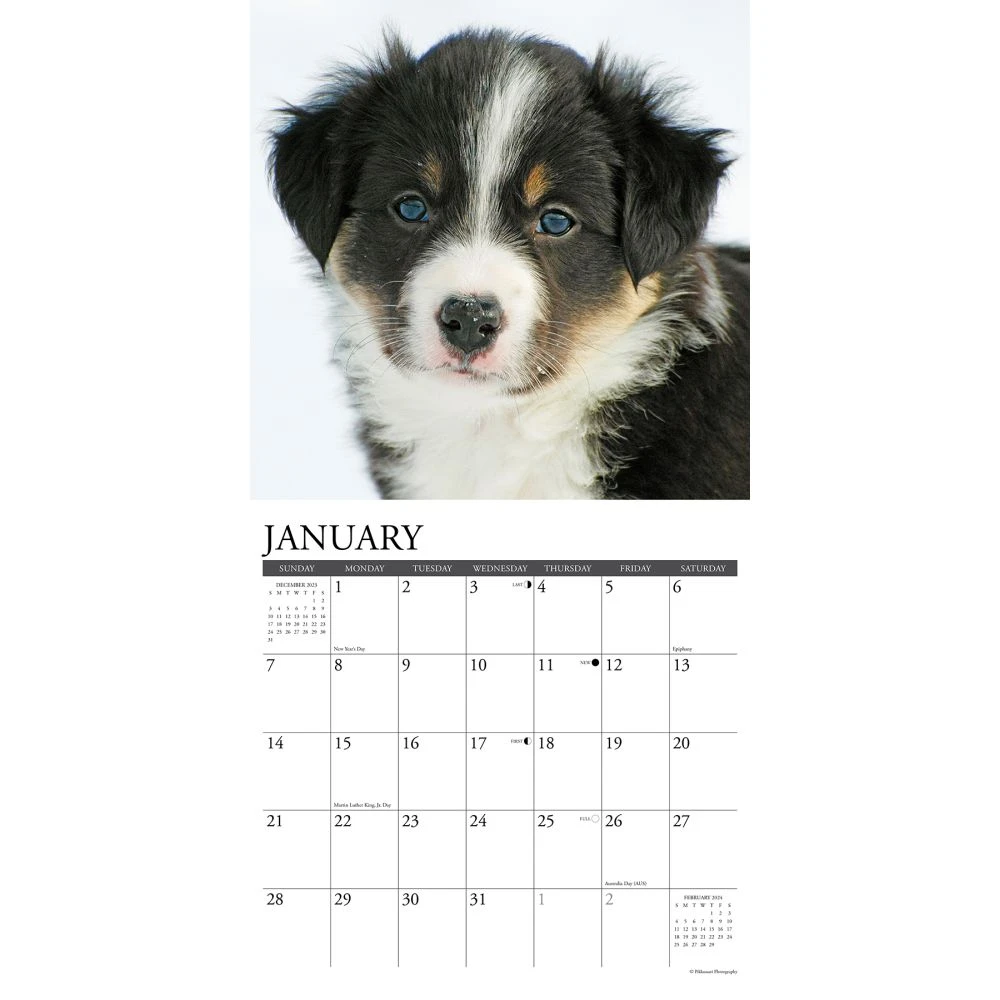 Born with high energy and natural instinct, these charming puppies are destined to become the handsome, good natured leaders that their parents were before them.Printed with soy based inks on FSC certified paper, this 12″ x 24″ wall calendar features large monthly grids that offer ample room for jotting notes, along with six bonus months of July through December of 2023. Also includes moon phases (CST), standard U.S. and international holidays.