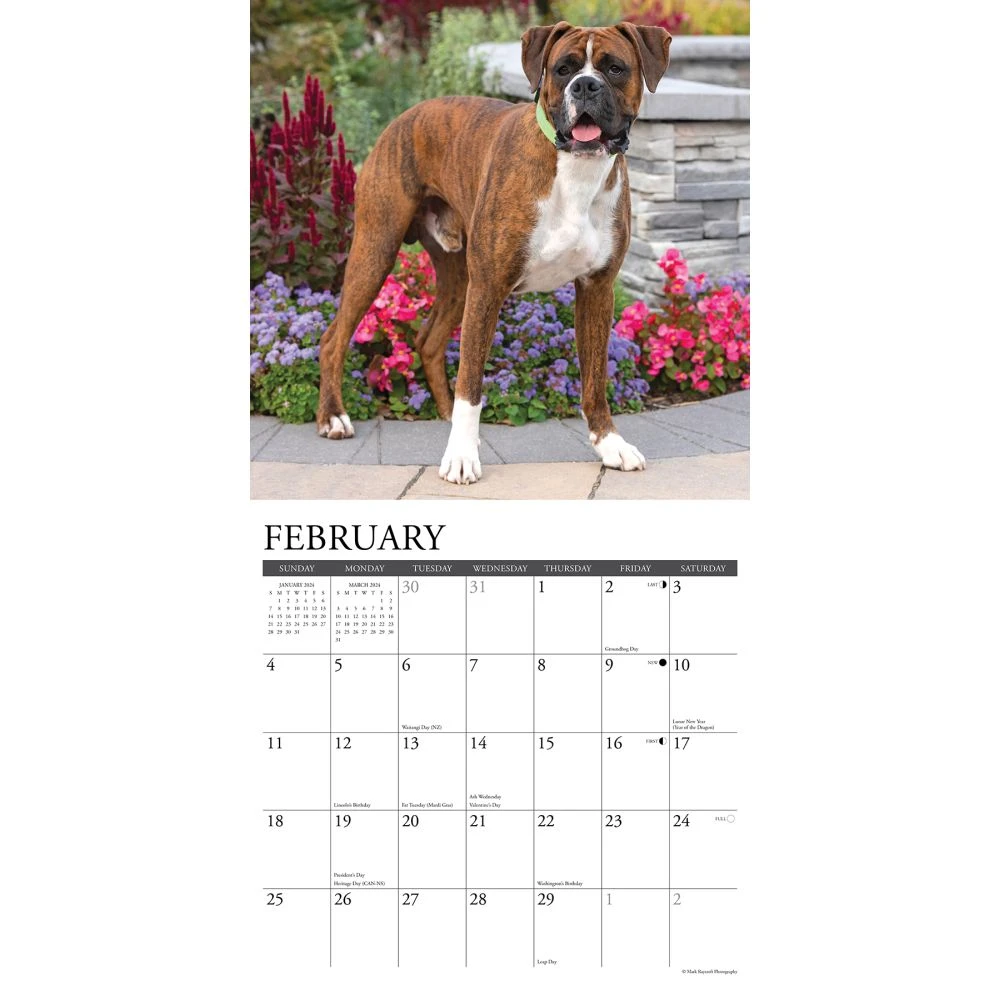 Boxers are strong and powerful yet loving, loyal dogs who wish nothing more than to be close to family. This wall calendar dazzles the eye with twelve brilliant full color Boxer photographs. Printed with soy based inks on FSC certified paper, this 12″ x 12″ wall calendar features large monthly grids that offer ample room for jotting notes, along with six bonus months of July through December of 2023. Also includes moon phases (CST), standard U.S. and international holidays.