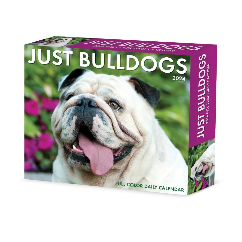 While their ancestors may have been fierce “bull baiters”, today’s Bulldogs display charm, gentleness and affection to complement their courage. Enjoy a daily dose of their special sweetness throughout the year via these delightful, full color photographs. Full color images on easy tear off pages are printed on high quality, FSC certified paper with soy based inks. Pages are mounted on a recyclable stand for easy display. All major public and culturally significant holidays are included.