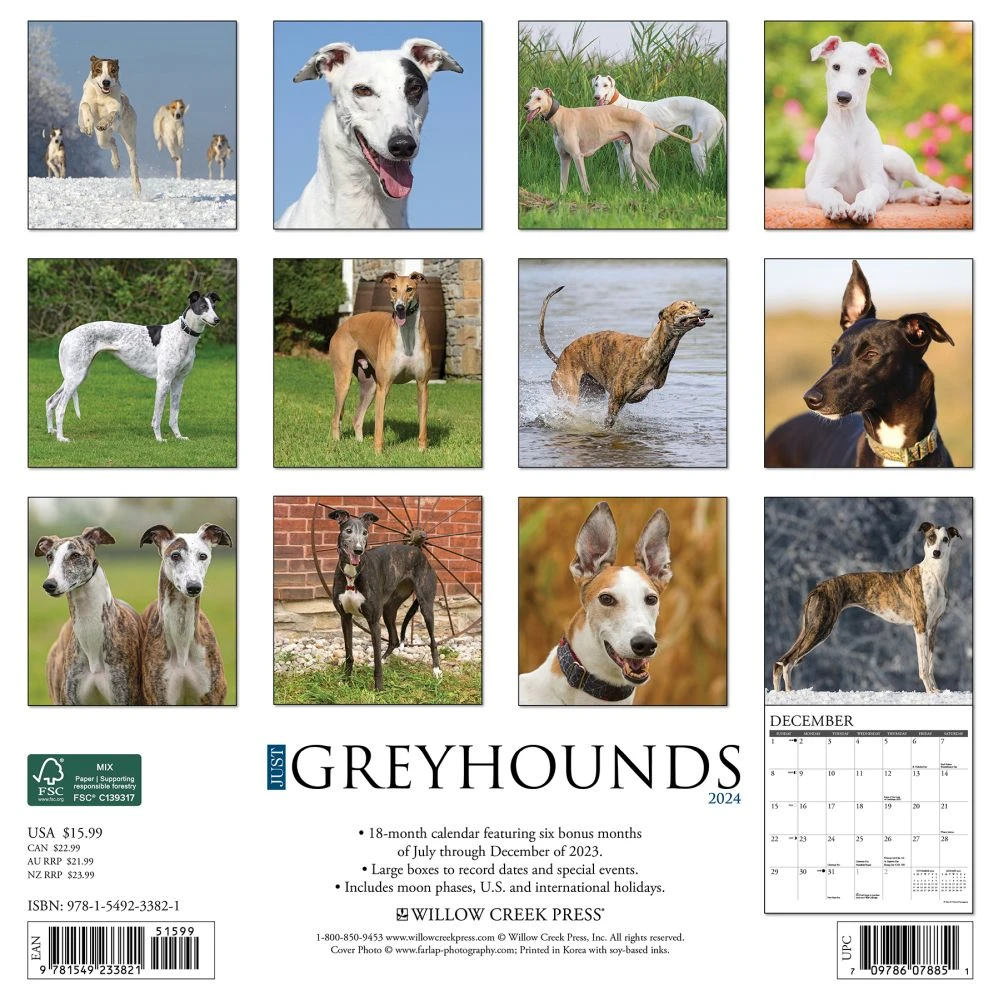 These twelve stunning full color photographs capture all the grace, charm and intelligence that embody the Greyhound. Printed with soy based inks on FSC certified paper, this 12″ x 24″ wall calendar features large monthly grids that offer ample room for jotting notes, along with six bonus months of July through December of 2023. Also includes moon phases (CST), standard U.S. and international holidays.