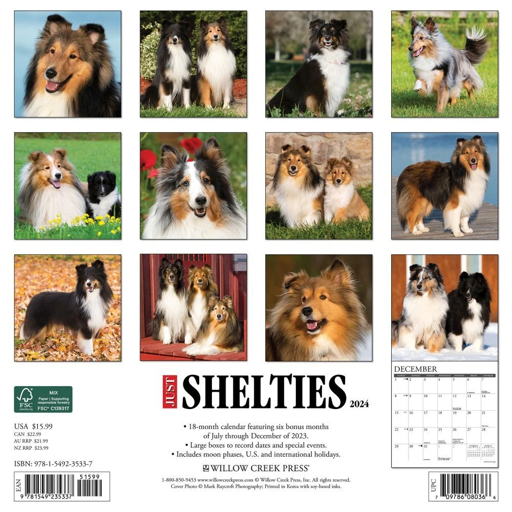 Shelties are known for their gorgeous, flowing coats and happy smiles. Twelve vivid, full color photographs celebrate all the loving, loyal and affectionate traits that make them such wonderful companions. Printed with soy based inks on FSC certified paper, this 12″ x 12″ wall calendar features large monthly grids that offer ample room for jotting notes, along with six bonus months of July through December of 2023. Also includes moon phases (CST), standard U.S. and international holidays.