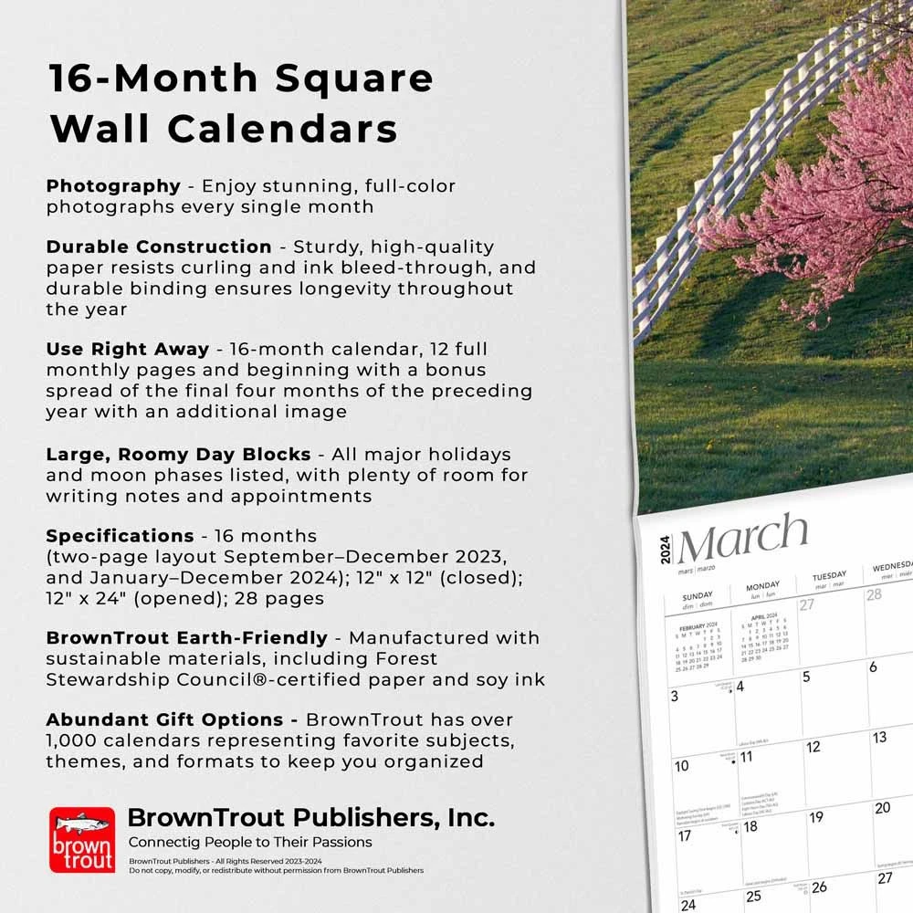 Among the most beautiful places in America, Kentucky is a state of lush hills, hollers, forests, and mountains. This beautiful countryside is enhanced by its distinctive blue hued grass, the namesake for bluegrass music. Kentucky will captivate you all year long with the fine photography in this gorgeous calendar.