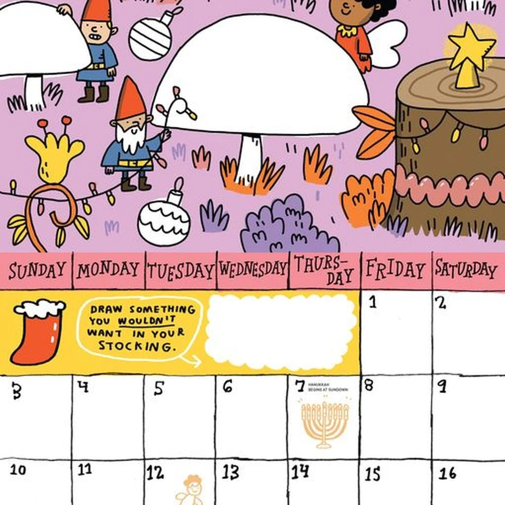 A whole year of totally unplugged fun for kids: doodle, solve puzzles, and sticker your way through 2024!?Each month, discover lively illustrations and interactive prompts that get kids dreaming, doodling, thinking, and creating around a seasonal theme. It?s a pot of gold at the end of the rainbow for March?draw the treasures it may hold. In October, sketch what a crew of not so scary monsters are having for dinner. Plus word challenges, mazes, and silly jokes: Why did the golfer bring extra socks? In case she got a hole in one! The calendar includes a drop down storage pocket and 300 brightly colored stickers to decorate the pages?and anything else around the house. Printed on uncoated, responsibly sourced paper.