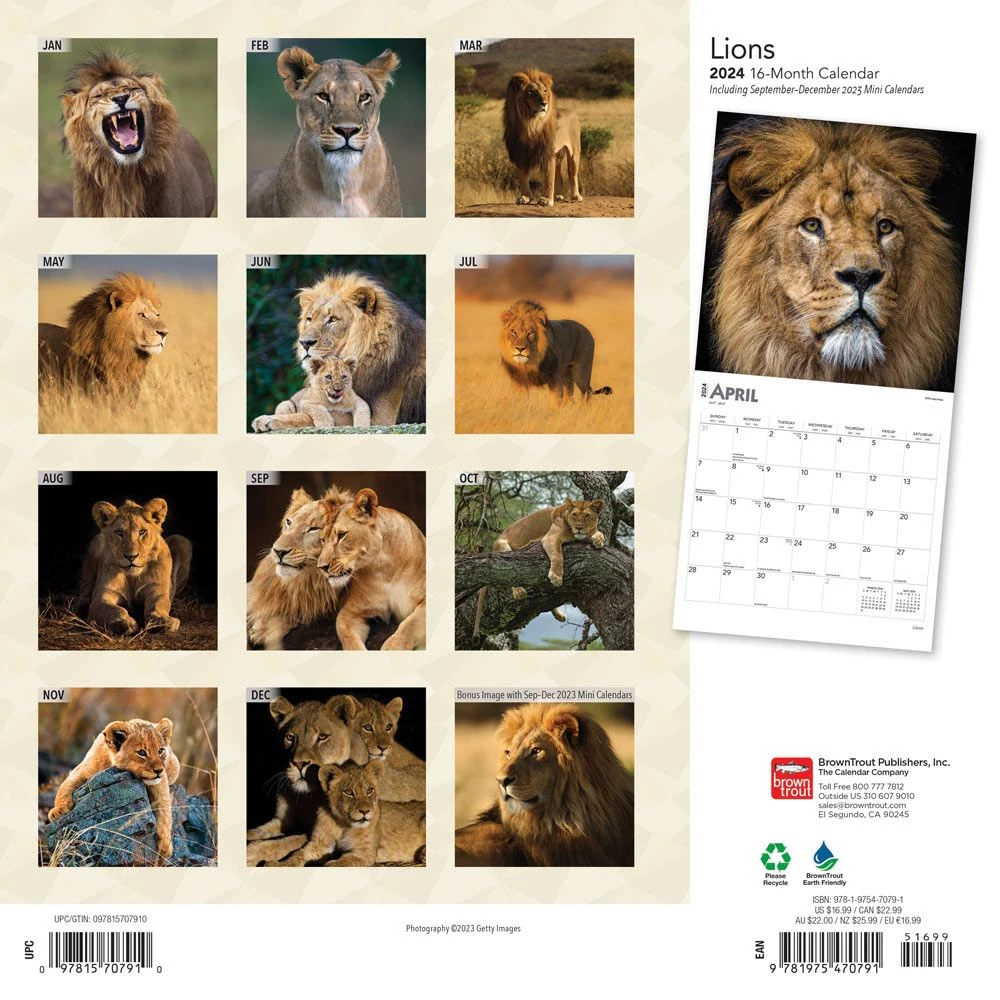 A native of Africa and India, the lion is feared and respected. The most social members of the cat family, lions are predators with enormous speed. While the male lion may sport an impressive mane, it is the female that stalks the prey and hunts. Perhaps the lioness should be called “Queen of the Jungle”. Take pride in your love for lions with this calendar.