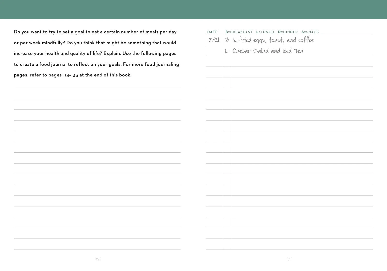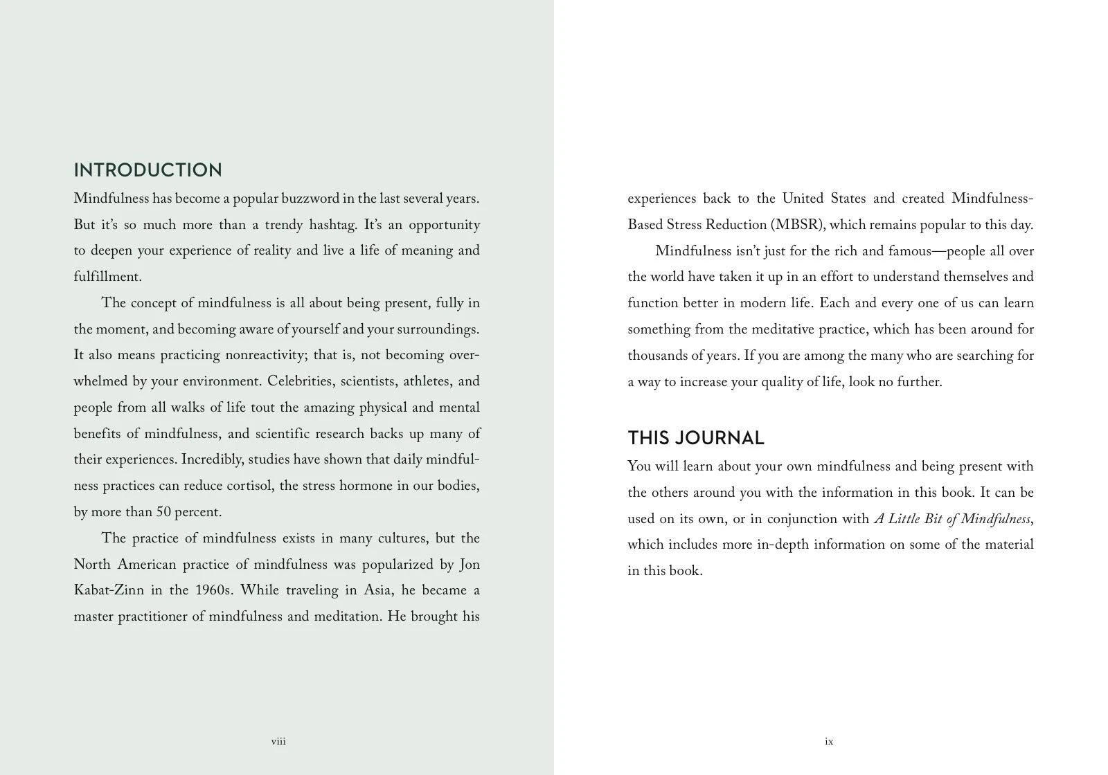 Mindfulness can help you be present and peaceful in the moment. Using this journal, you can access a deeper creativity, create a healthier body, and learn techniques for mindful eating and drinking, handling emotions, dealing with relationships, and observing your own thoughts.
