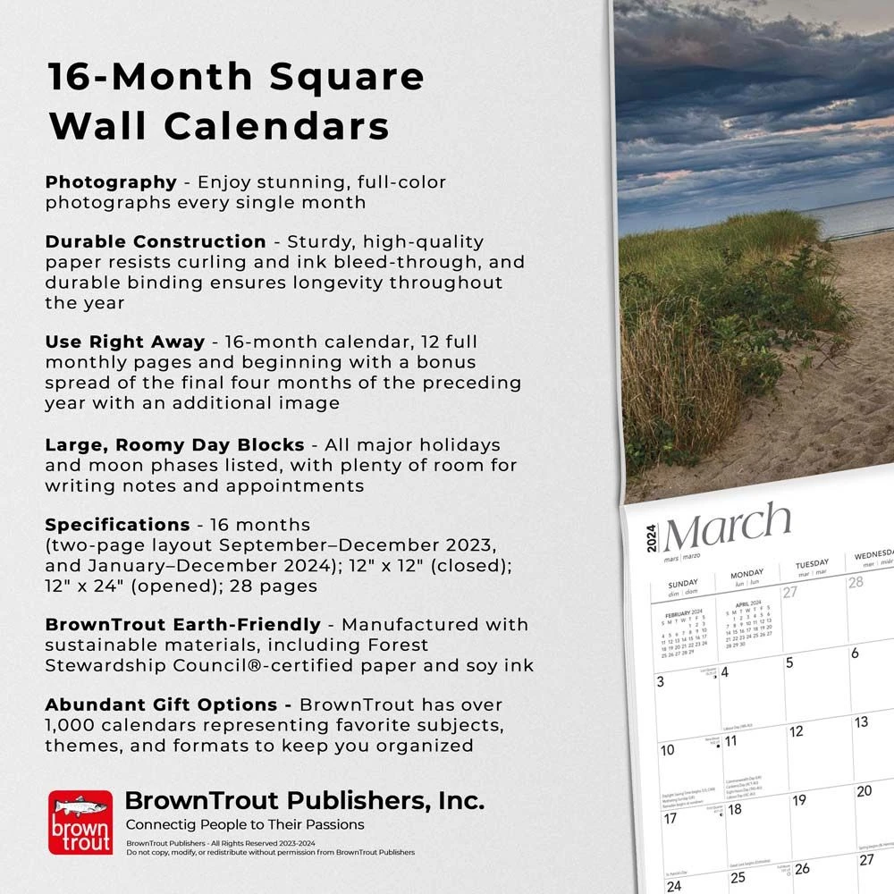 With more coastline than California and more than 3,000 islands off its shores, the Maine Coast boasts a variety of stunning natural scenery. From the peaceful sandy beaches of the Southern Coast to the rocky coastline and historic harbors of the Mid Coast to Acadia National Park Down East, the spectacular scenic photography in this calendar will transport you to the beautiful, unspoiled Maine Coast.