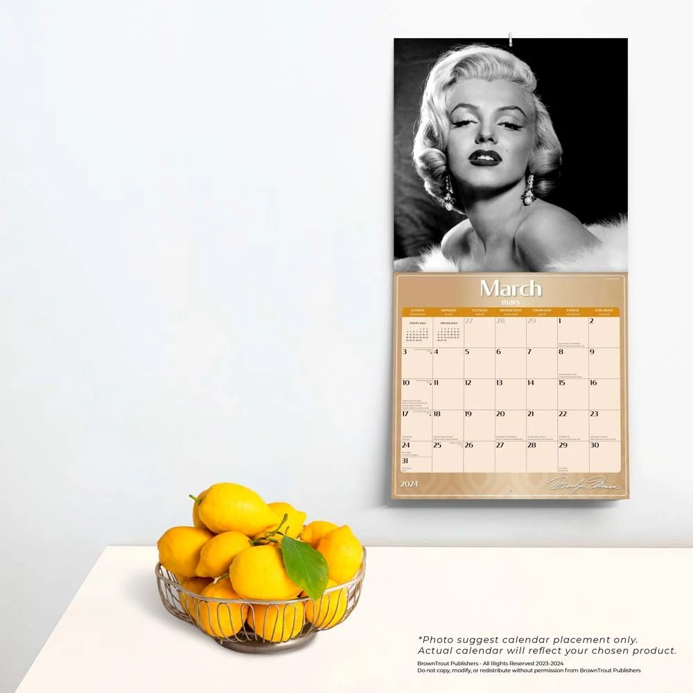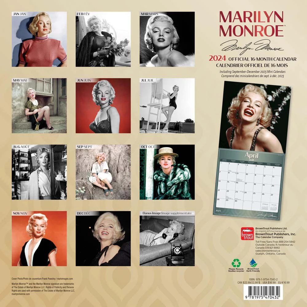 Glamorous, gorgeous, and charismatic, this blond bombshell was famous for her sexy walk, a distinguished acting career, and her tumultuous personal life. Marilyn remains an American cultural icon decades after her tragic death. This calendar is a loving tribute to the incomparable Marilyn Monroe. This square wall calendar is bilingual (English, French).