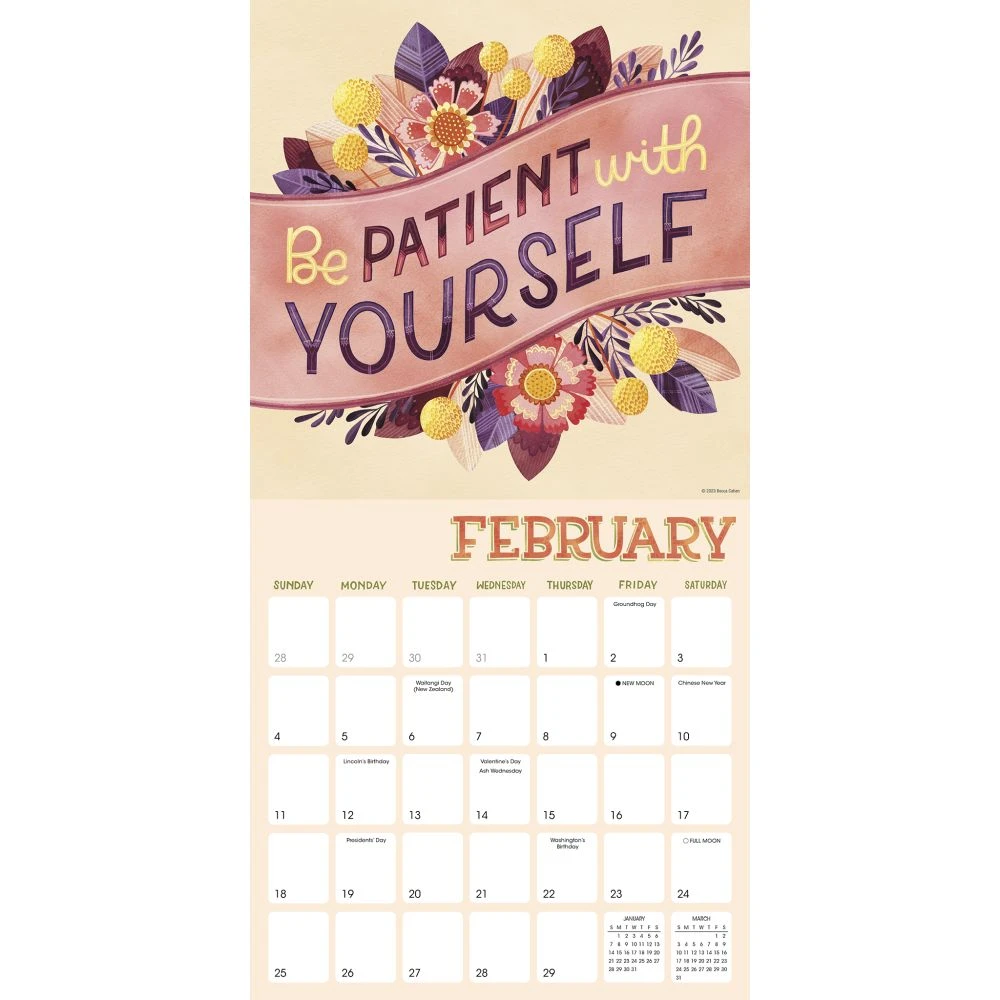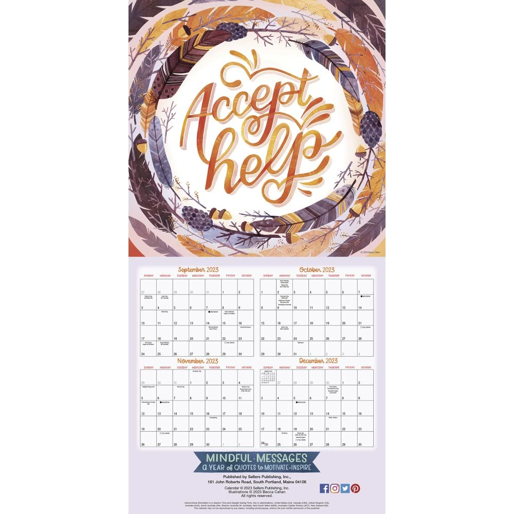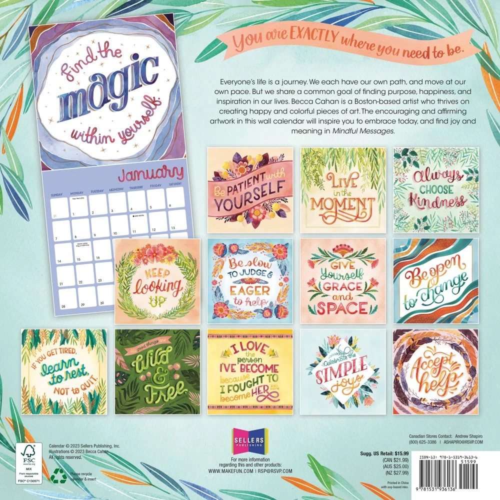 EveryoneÂ’s life is a journey. We each have our own path, and move at our own pace. But we share a common goal of finding purpose, happiness, and inspiration in our lives. Becca Cahan is a Boston based artist who thrives on creating happy and colorful pieces of art. The encouraging and affirming artwork in this wall calendar will inspire you to embrace today, and find joy and meaning in Mindful Messages.