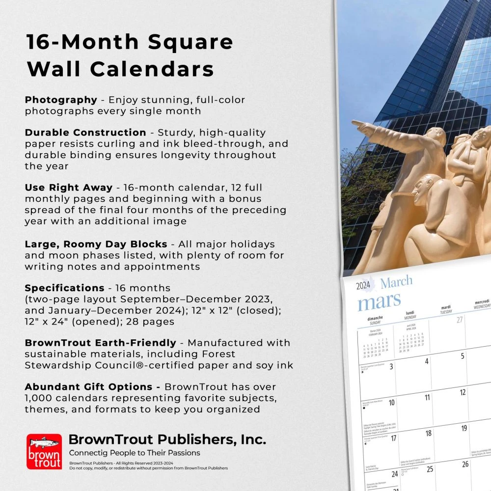 - Specifications ? 16 months (two-page layout September?December 2023, and January?December 2024); 12″ x 12″ (closed); 12″ x 24″ (opened); 28 pages