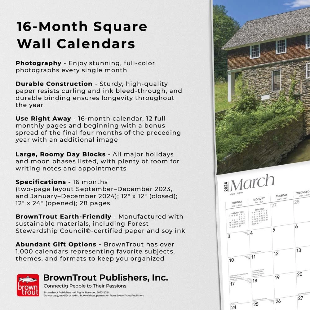 With dramatic coastal cliffs, historical lighthouses, and picturesque towns brimming with handsome homes, New England is a place of great beauty and charm. Autumn imbues this lovely region with crimson and copper hues that enhance its already stunning landscape. Go from season to season and place to place in New England with this delightful calendar.