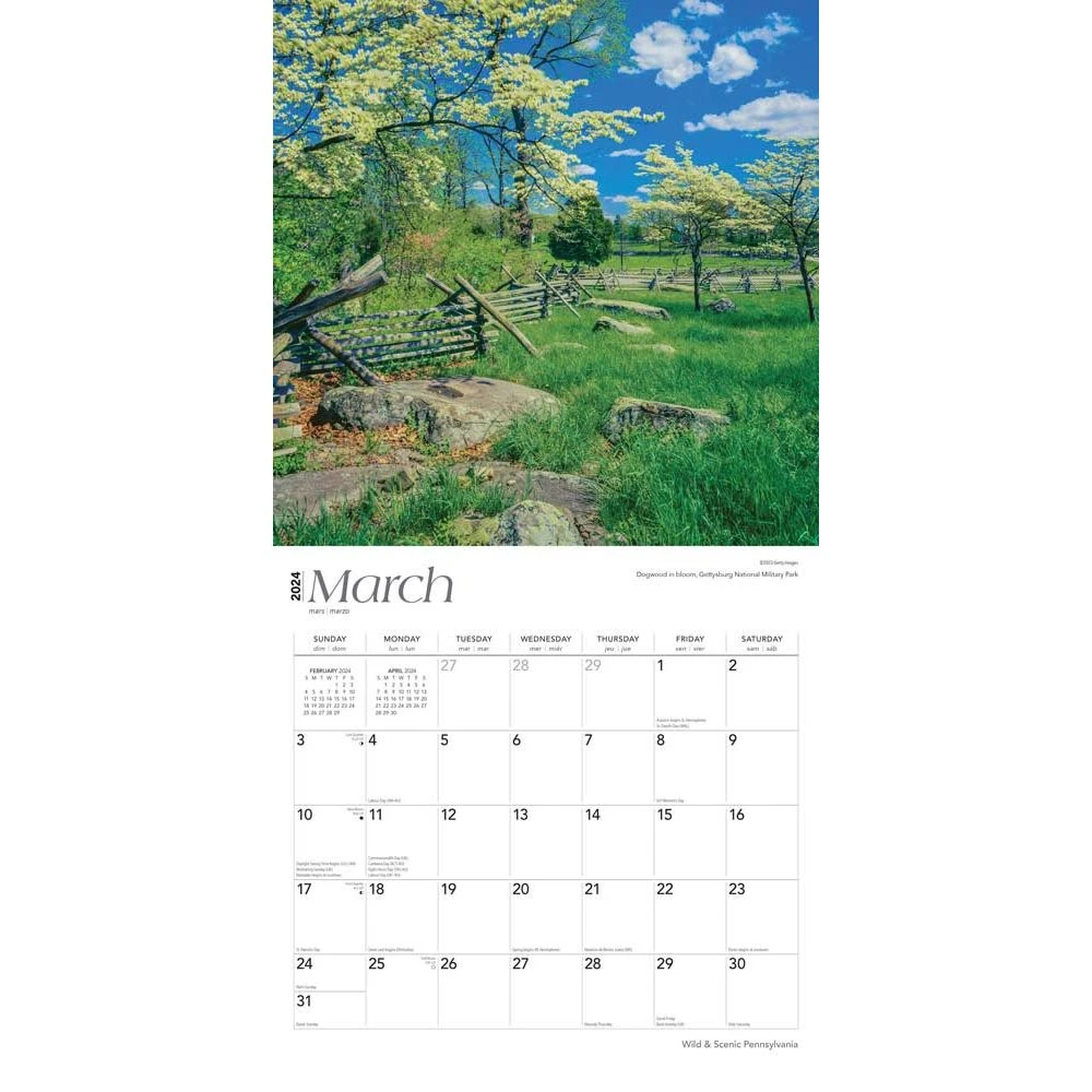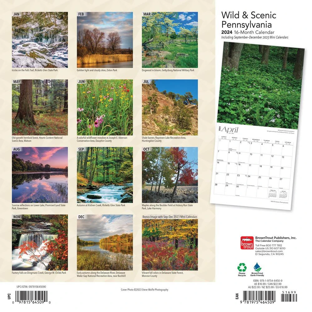 Pennsylvania’s diverse and glorious natural landscape includes a wide variety of flora and fauna, coastal waters, lush forests, and impressive foliage. The Keystone State includes 116 state parks, which are home to white tailed deer, black bears, and hemlock trees. Explore this breathtakingly beautiful state with this Wild & Scenic Pennsylvania calendar.