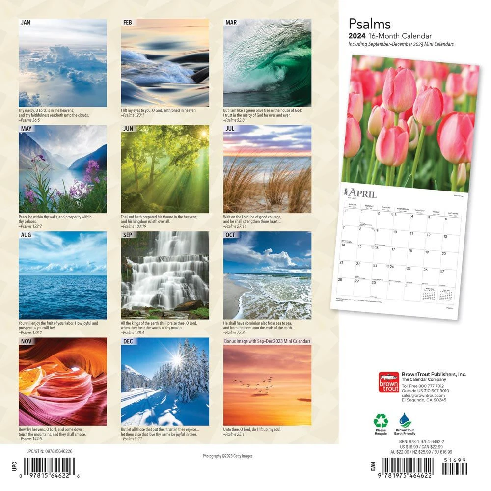 Sacred poems or hymns to God, psalms offer peace, solace, and inspiration to many. It is believed that King David wrote the 150 chapters of the Book of Psalms. In Hebrew they are known as Tehilim. The Psalms calendar joins a collection of fine nature photography with a series of inspirational psalms.