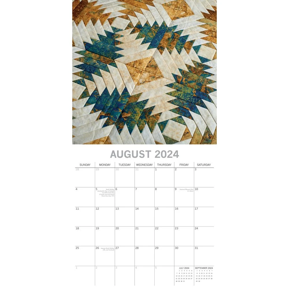 This high quality 2024 calendar is perfect for fans of Quilting. Each month features fantastic images of this longstanding popular hobby, while the large grid is ideal for the home and office with space for birthdays and notes.