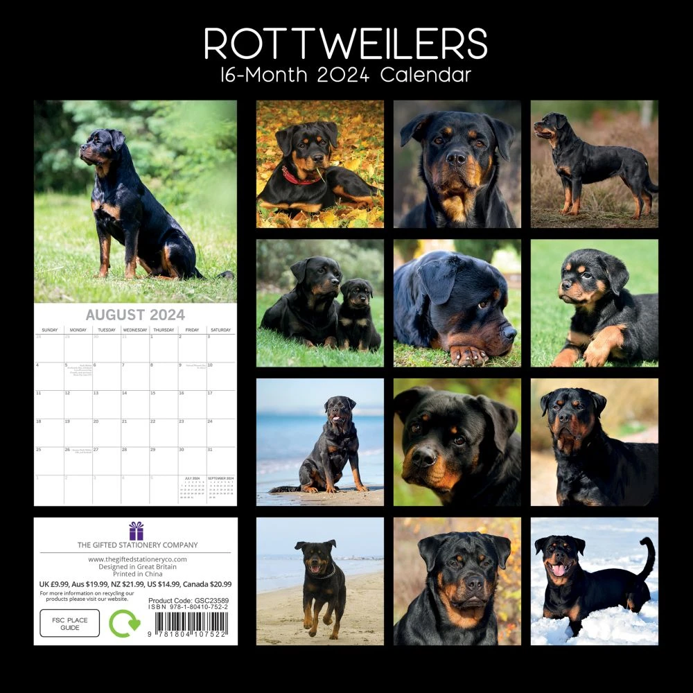 This lovely photographed 2024 calendar is perfect for Rottweilers lovers. While the cutest Rottweilers are showcased each month, the large grid is ideal for the home and office with space for birthdays and notes.