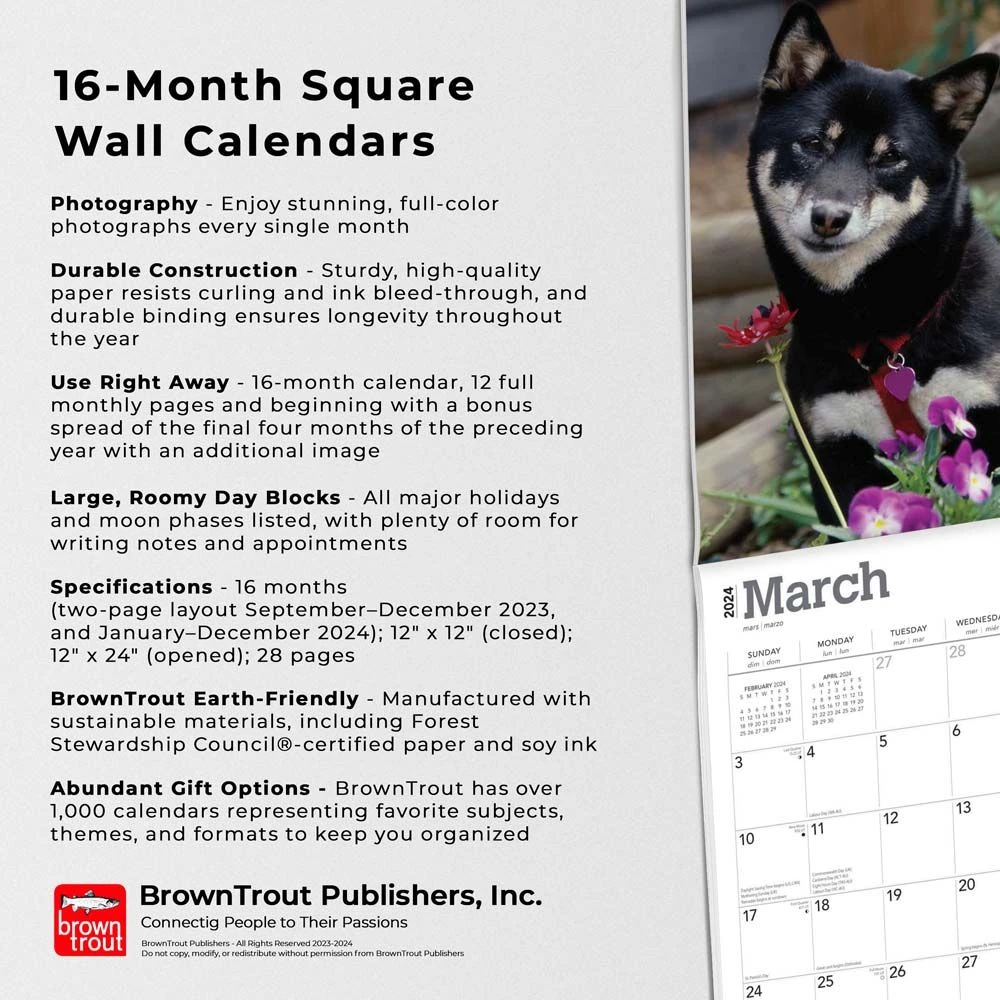 The smallest and oldest of Japan’s dogs, the Shiba Inu was bred for hunting in the dense undergrowth of Japan’s mountainous regions. With a thick plush coat, a black button nose, an animated tail, and endearing teddy bear ears, the Shiba Inu is inquisitive, intrepid, and forthright. Honor this wonderful breed with this Shiba Inu calendar.
