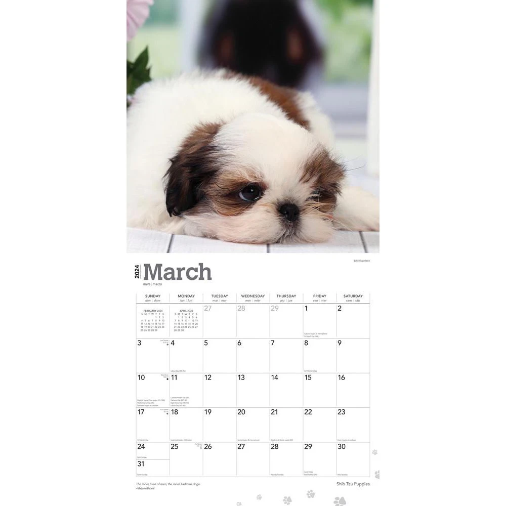 The Shih Tzu is a very cute dog, and Shih Tzu puppies are even more adorable! This dog breed is affectionate and posses a happy disposition. Enjoy the playful Shih Tzu puppies in this cute calendar.