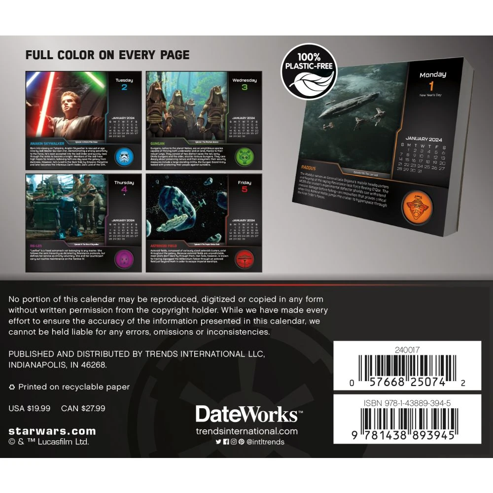 DateWorks 2024 Day at a Time Calendars feature full color, page a day designs with Saturday and Sunday combined, and a sturdy, self standing easel making it the perfect addition to your office desk decor. To help reduce waste, DateWorks Day at a Time Calendars are now plastic free! The former plastic easel is now a sturdy, eco friendly gray board material. DateWorks 2024 Calendars are great for staying organized and productive all year long. They also make a perfect gift for anyone on your list!