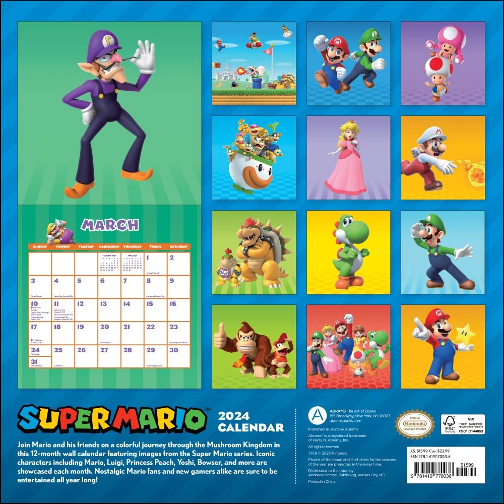 Featuring bold, colorful art from the Super Mario? video game series, this 12 month calendar is a memorable journey through the Mushroom Kingdom.