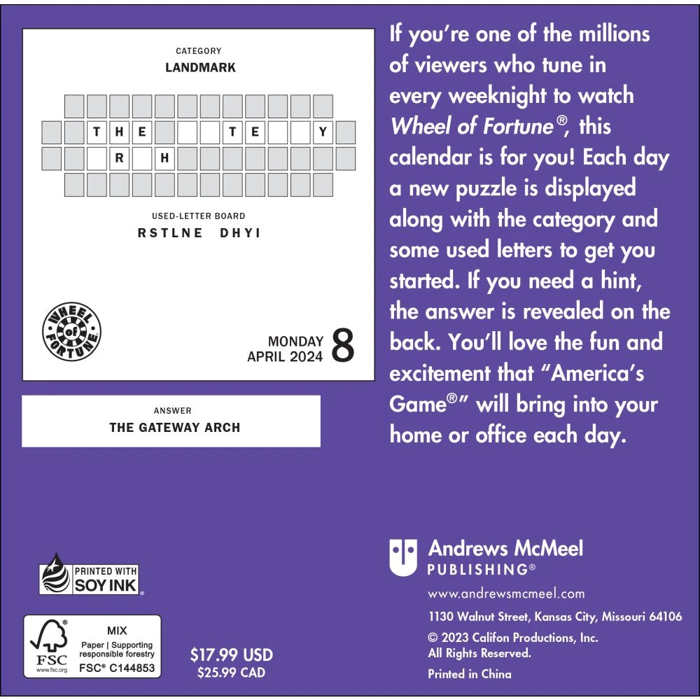 Experience the thrill of solving a Wheel of Fortune puzzle all year with this tricky yet addictive calendar.