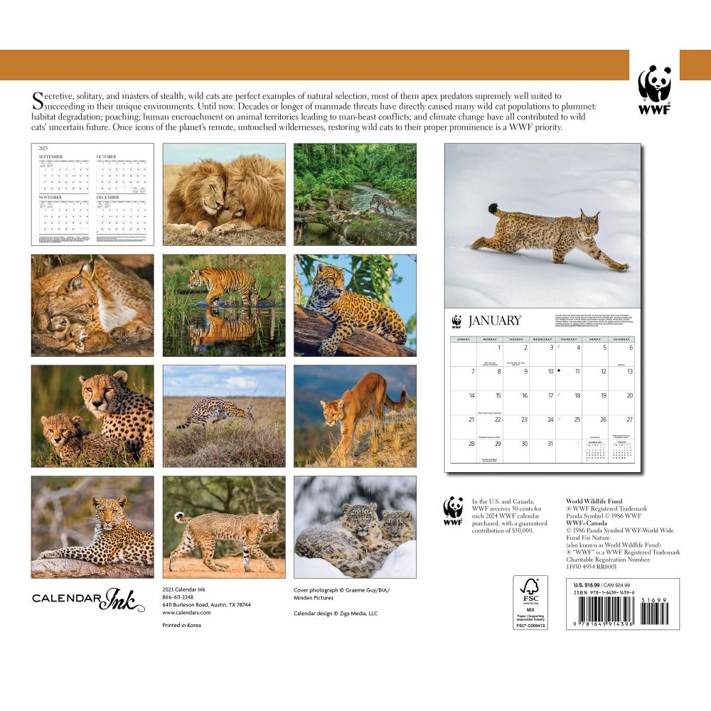 Lions, tigers, panthers, and jaguars are just a few of the wild cats gracing the pages of the Wild Cats WWF 2024 Wall Calendar. Running through wide open spaces, trudging through the Arctic snow, or lurking through the Sahara grasses, these wild cats have been gifted with the characteristics needed to adapt to their environment. In the US and Canada, WWF receives 50 cents for each WWF calendar purchased.