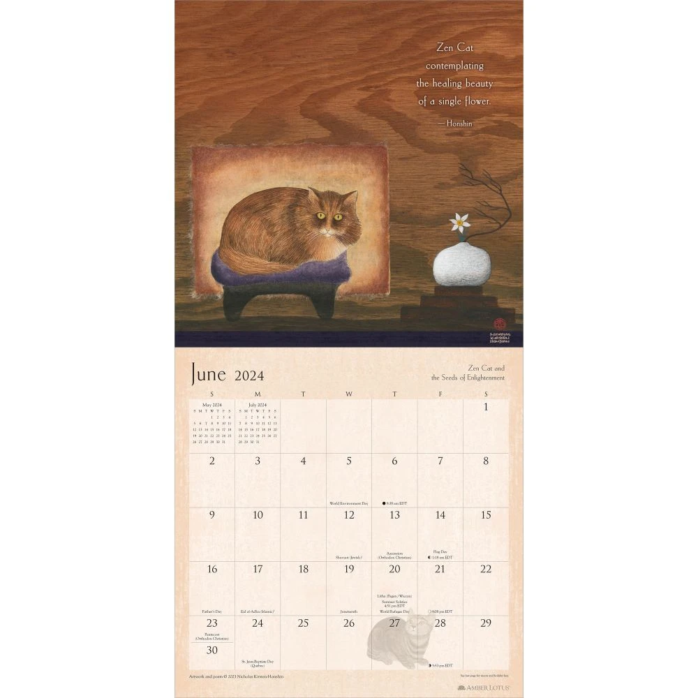 The teachings of the Zen Cat are born in awareness and the oneness of existence. They demonstrate the love, peace, and joy that unfold in our hearts as we embrace the sacredness and beauty of all life. The Zen Cat wall calendar is a meditation in art and words on the interconnectedness of all life. Artist and author Nicholas Kirsten Honshin uses painting and poetry to convey a message from the pure heart of the universe.